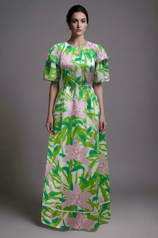 Flower Wrap Linen Dress