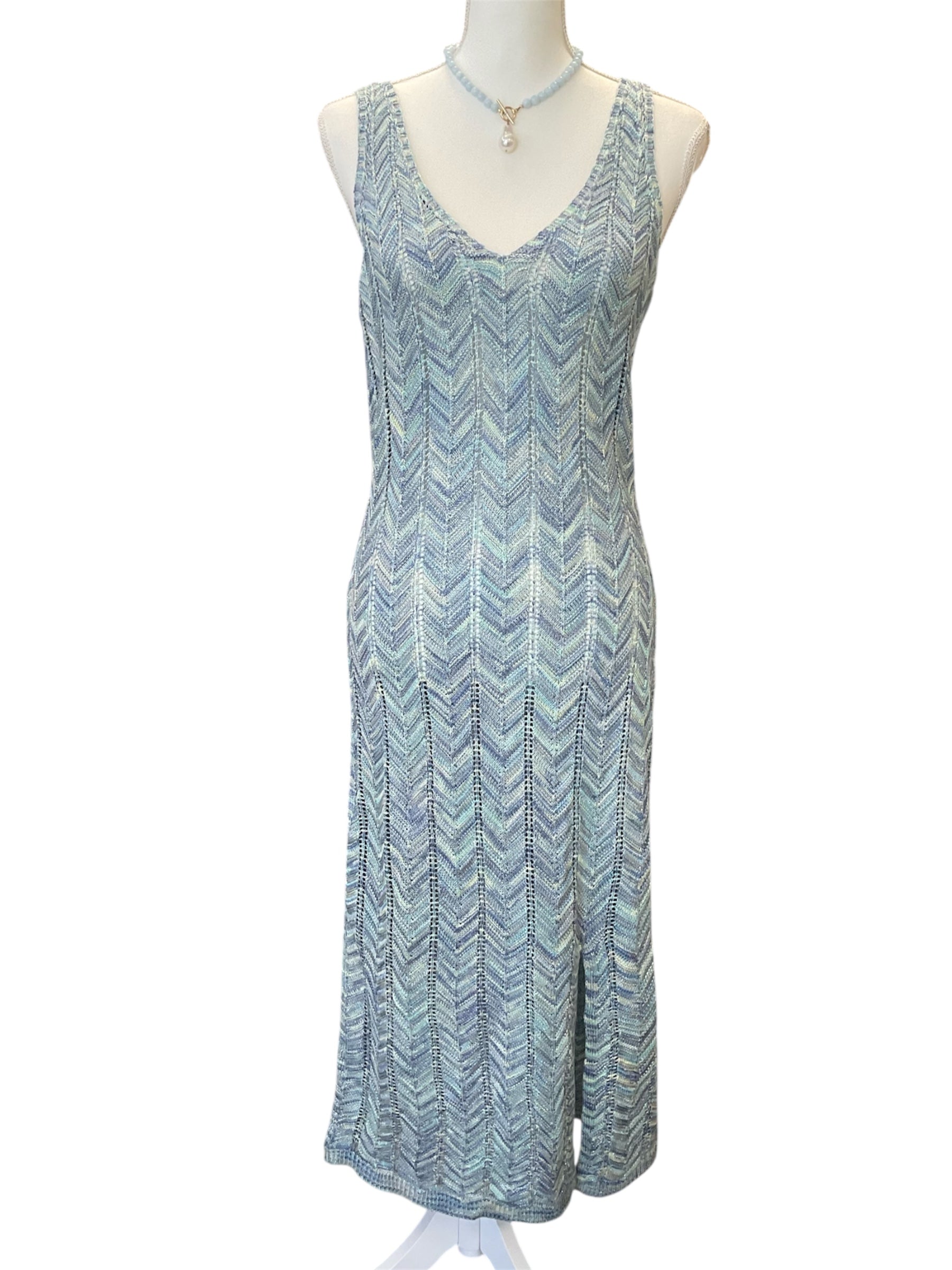 Embrace summer elegance with the AnaLina Dress, crafted from delicate metallic yarn in shades of blue. Featuring a front slit for added allure, this lightweight and breathable dress ensures comfort while making a sophisticated statement. Ideal for beachwear, casual events, or evening walks, the AnaLina Dress is a refined choice to elevate your warm-weather attire.