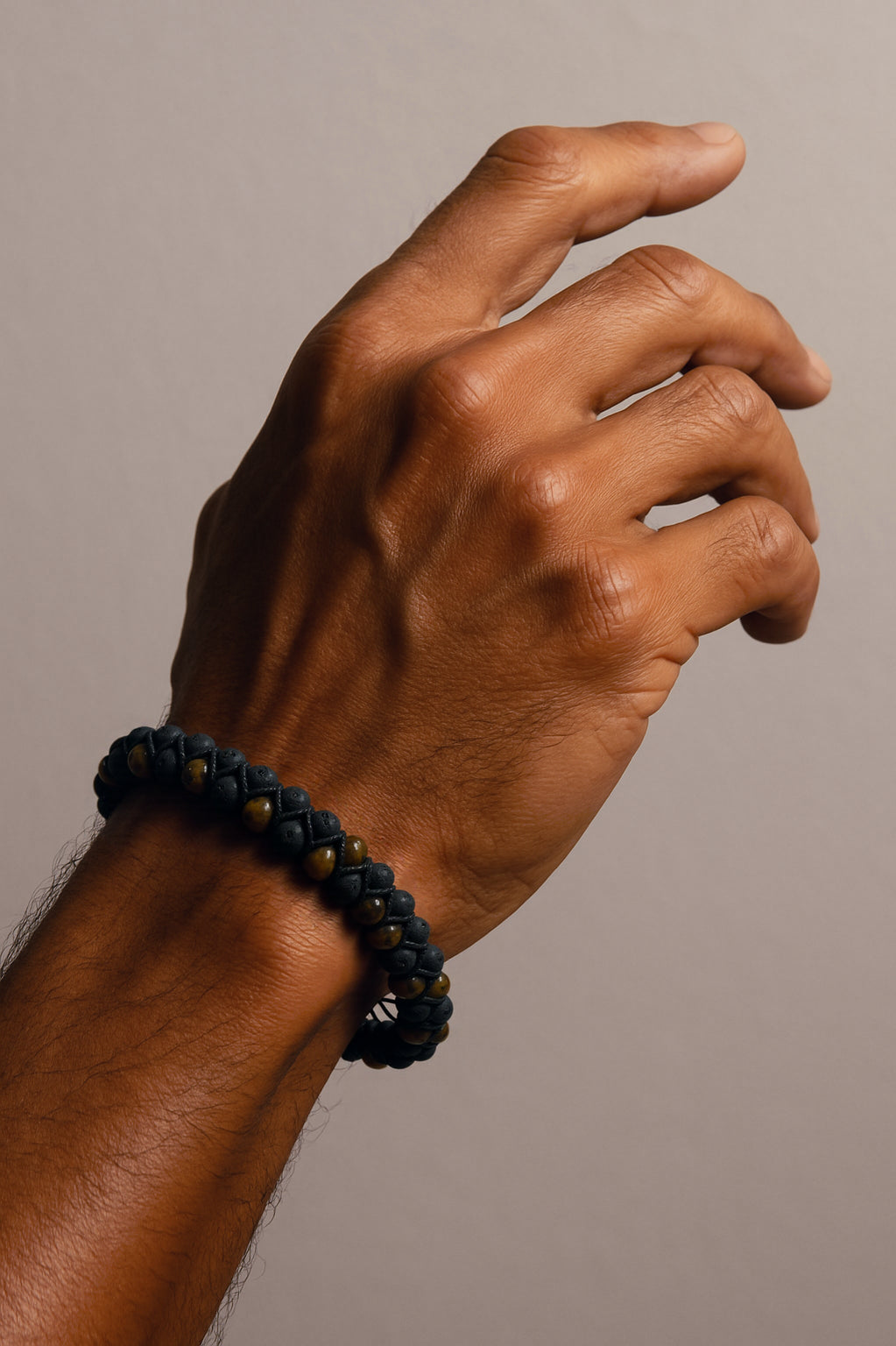 Known for providing strength, protection, courage and inner power, Tiger Eye is a stone of great power. Complementing it, Lava stones promote grounding, strength and rebirth. This adjustable bracelet, ranging from 6 to 12 inches, is a distinguished addition to any man’s collection. Meticulously crafted, it showcases double-beaded 8mm Genuine Tiger Eye and Lava stones that exude timeless elegance. Its adjustable fit ensures comfort for both everyday wear and special occasions. Elevate your style with this sophisticated piece that perfectly blends classic refinement with modern design.
