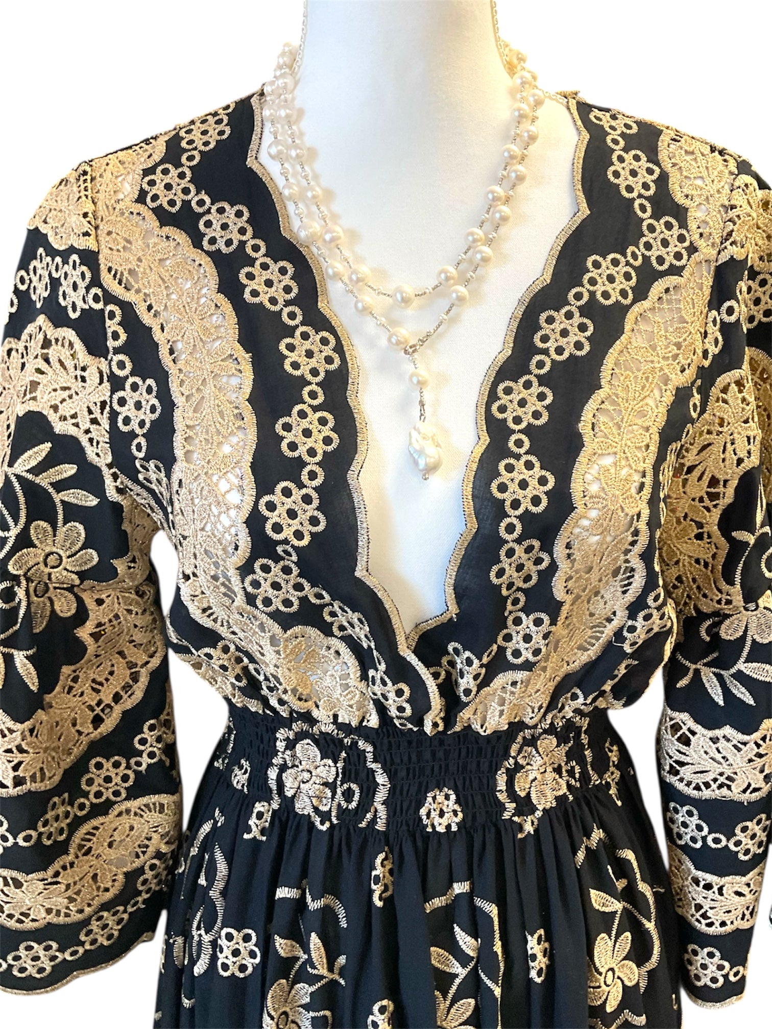 This striking black dress captures the essence of refined elegance with its intricate floral embellishments and impeccable tailoring. Perfect for formal events and upscale gatherings, it balances understated sophistication with wearable comfort. The thoughtfully designed silhouette flatters while allowing freedom of movement, making it an ideal choice for galas, evening celebrations, and special occasions. A versatile investment piece that transcends trends, this dress delivers polished glamour with an effortless grace that speaks to timeless style.