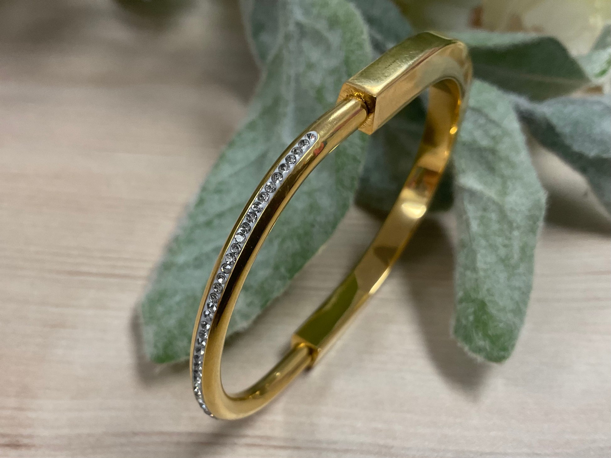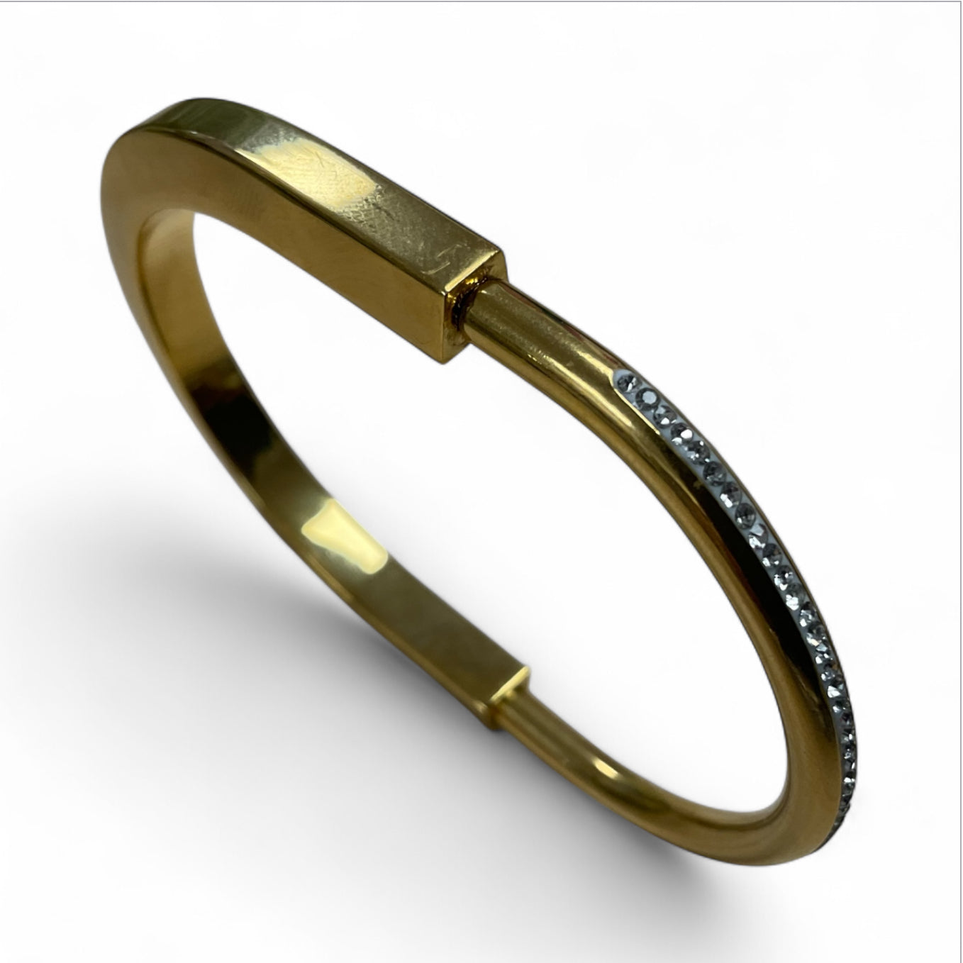 Elevate your ensemble with the Amelia Bangle, crafted from gold-plated stainless steel for enduring shine and grace. Its sleek design adds a refined touch of charm, perfect for enhancing any sophisticated look. This elegant accessory blends timeless style with modern allure, making it a versatile addition to your jewelry collection.